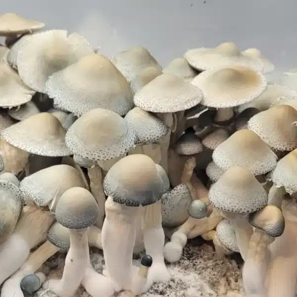 Strain Origin & Background – The BAPER RUST strain is a rare Psilocybe cubensis discovered during pheno-hunting at Basidium Labs. While studying Blue APE Revert (BAPER) and its non-rust counterpart, Bas noticed a light sky-blue mushroom with golden-brown spores. This unique combination set it apart from standard BAPER specimens.