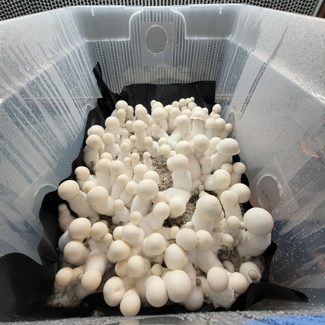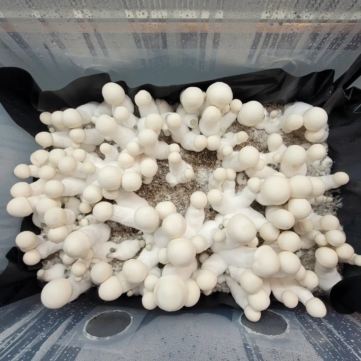 A standout among the Albino mutation family, King Boo showed healthy mycelial expansion but required extra patience during colonization. Fruits were dense, super smooth and impressive, making this a great strain to work with.