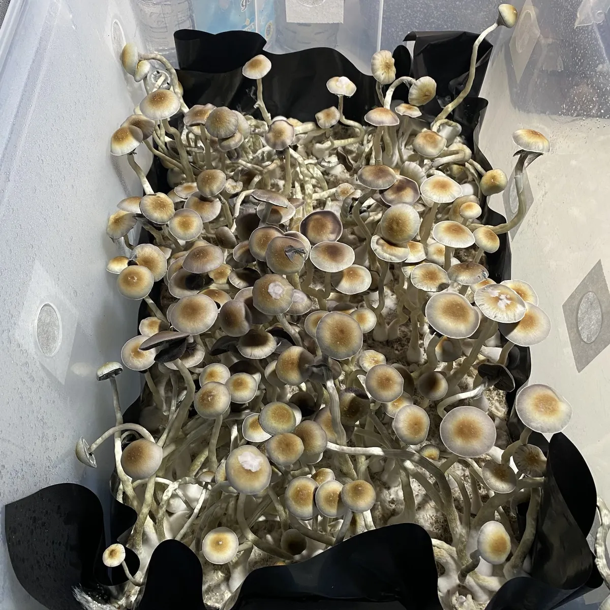 Once celebrated under the name Psilocybe natalensis, this remarkable species from southern Africa has recently been reclassified as Psilocybe ochraceocentrata, a close evolutionary relative of P. cubensis. The name translates to “ochre center,” referencing the distinctive golden-brown tone radiating from the middle of its cap. Our Manna from Heaven cut represents a refined and verified lineage, preserved for microscopy and genetic observation.