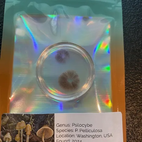 Psilocybe Pelliculosa Wild Spore Print is a rare wood-loving species native to the Pacific Northwest. Primarily found in Washington, Oregon, and British Columbia. This species thrives in coniferous forests, particularly in areas with disturbed soil, such as paths and roadsides.
