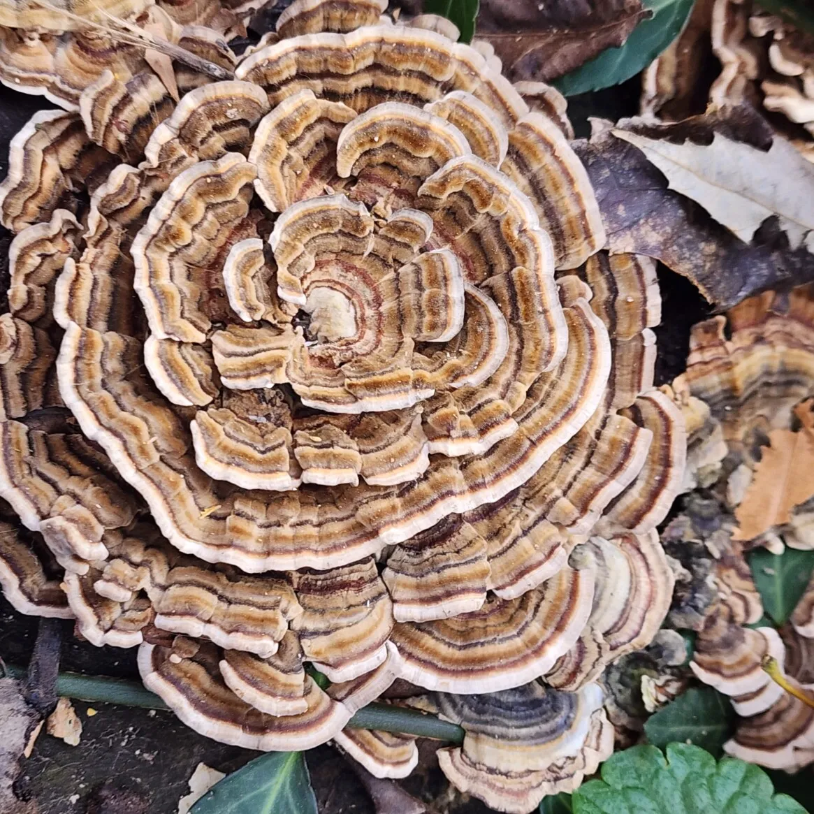 Trametes versicolor, commonly known as Turkey Tail, is a widely recognized polypore mushroom found across North America, Europe, and Asia. Distinguished by its colorful, fan-shaped fruiting bodies, Turkey Tail has fascinated researchers and mycologists for centuries.